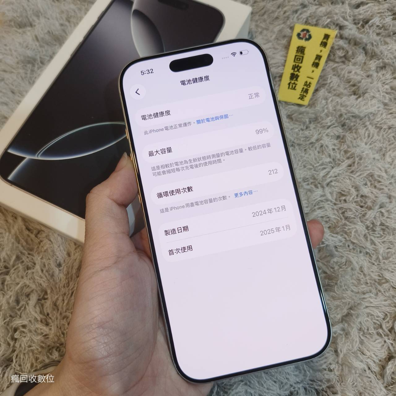 電池健康度:99% 【循環212次】